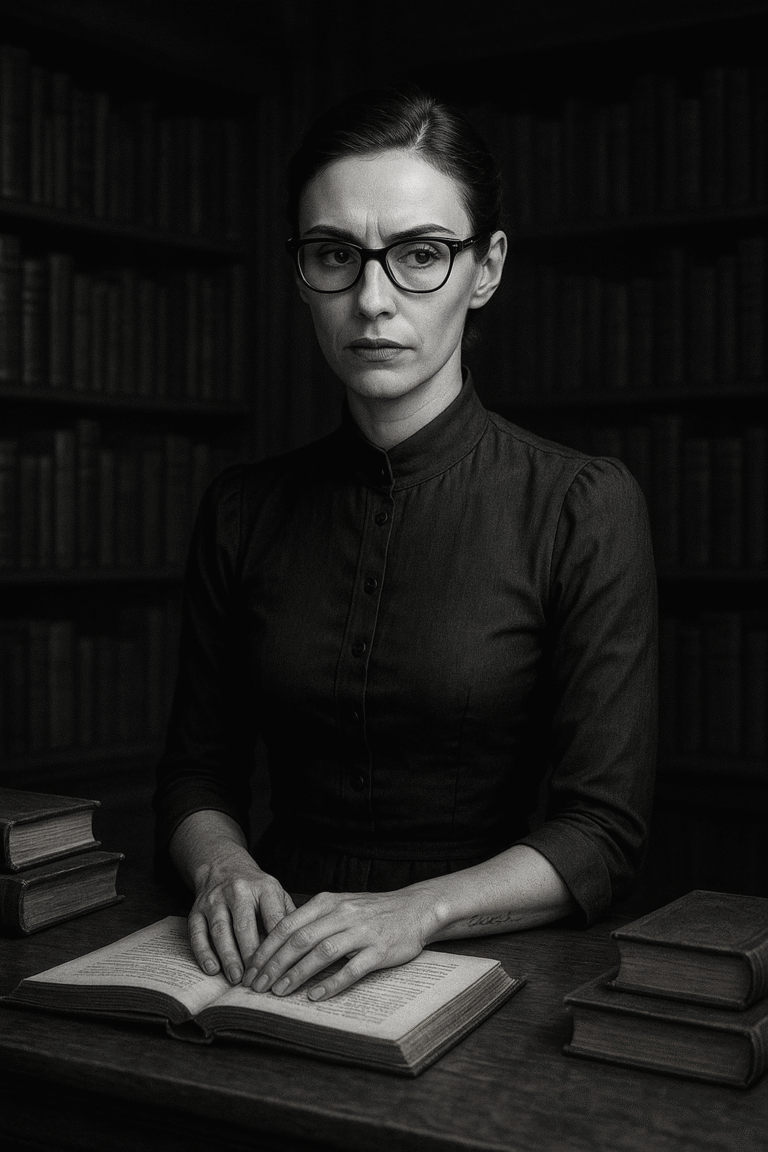 By day, Claire keeps to the quiet rhythms of the Velvet Library — soft-voiced, meticulous, hidden behind glasses and hand-labeled shelves. A woman of quiet beauty and deeper stillness, she moves through the world as if made of paper and…